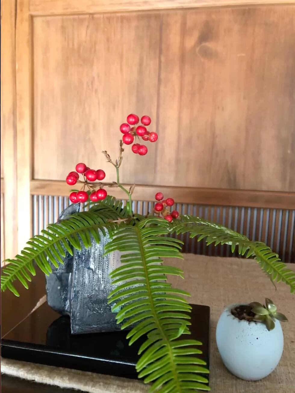 山で見つけたシダ植物と南天の実