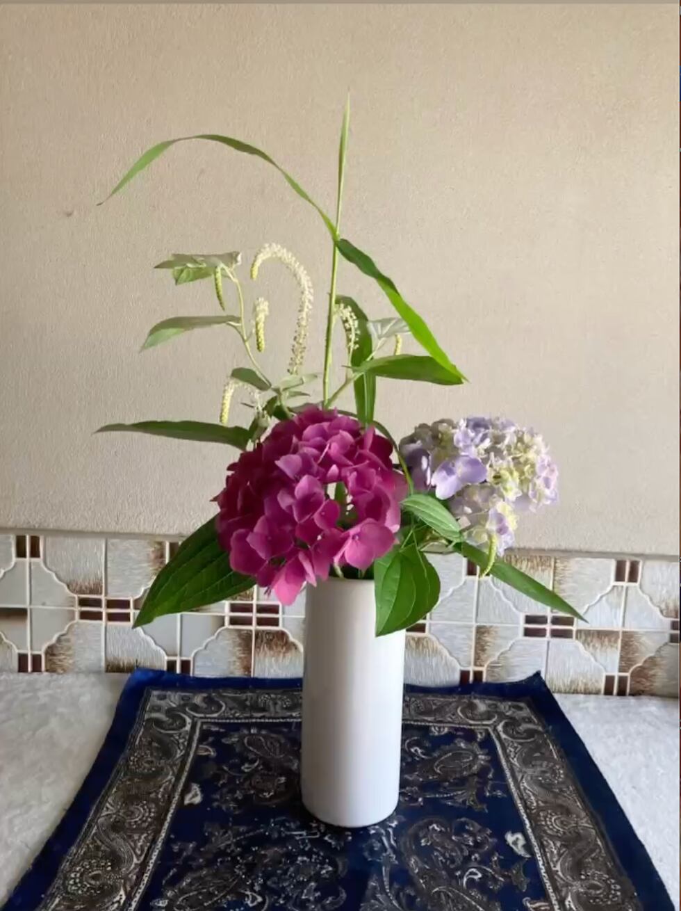 紫陽花と半夏生と猫じゃらしの葉
